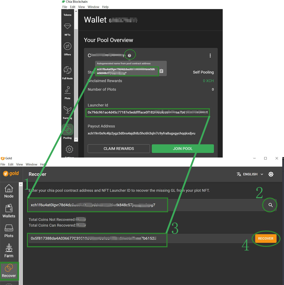 (1):Open chia, Click Pooling, Copy the Autogenerated name from pool contract address, paste it to Pool Contrace Address.